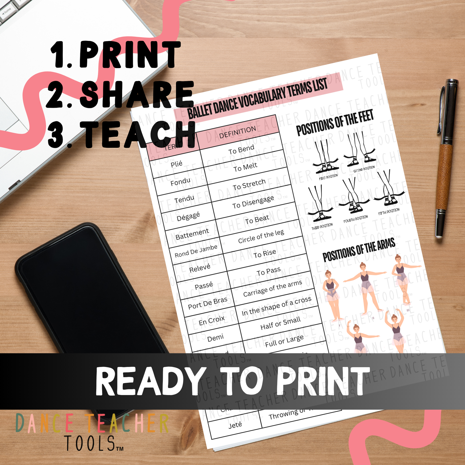Use this printable as a vocabulary guide, anchor chart, or student handout — a practical and visually engaging addition to any dance curriculum!